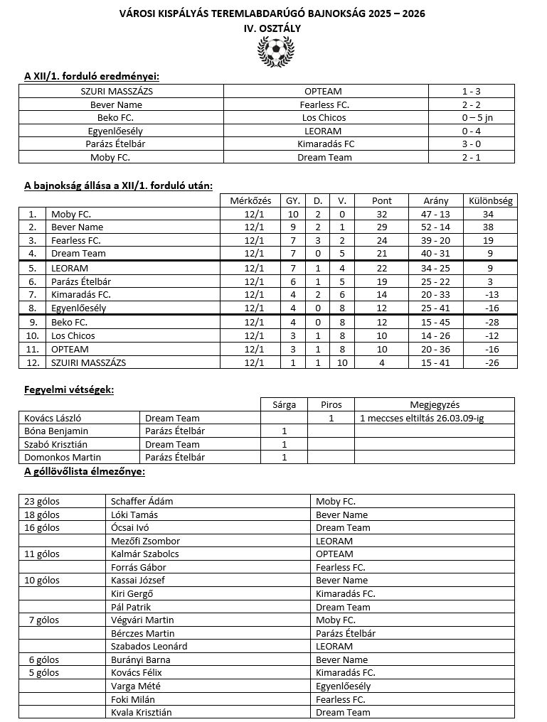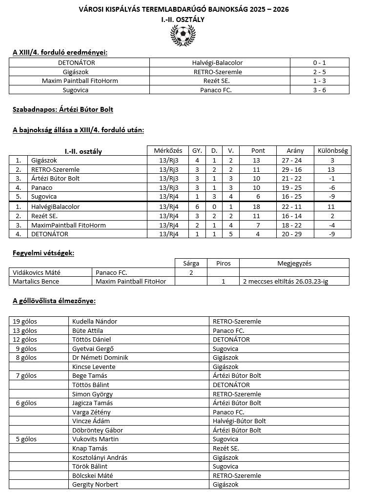 Városi Teremlabdarúgó Bajnokság rájátszásának eredményei