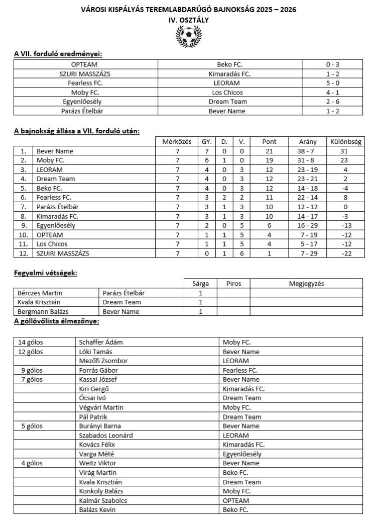 Gyorsan szeretnél értesülni a Sugópart híreiről? Csatlakozz hozzánk! Klikk, és like a Facebookon! Az első osztály tabelláját nem kaptuk meg.