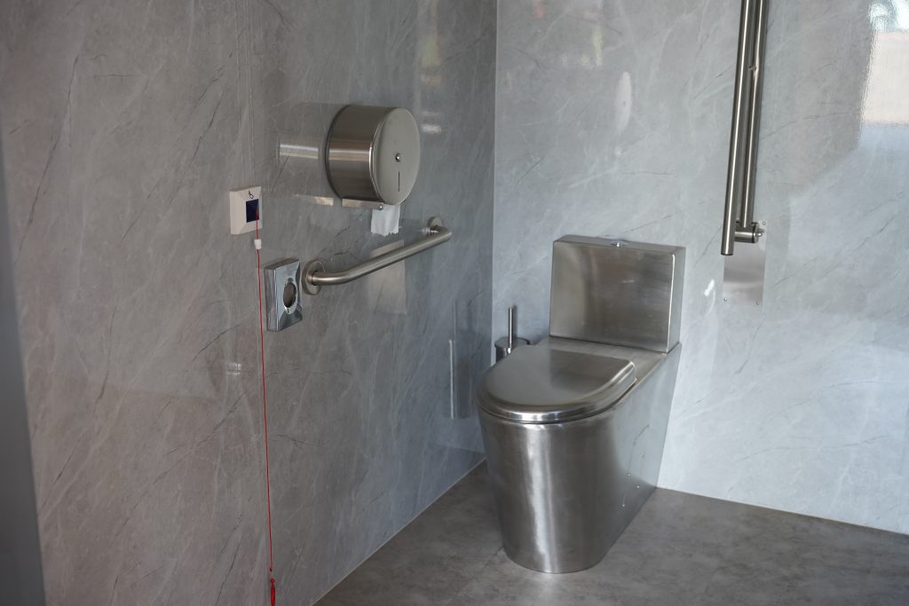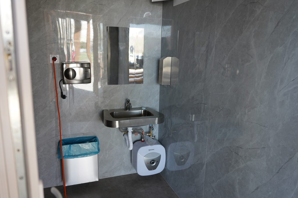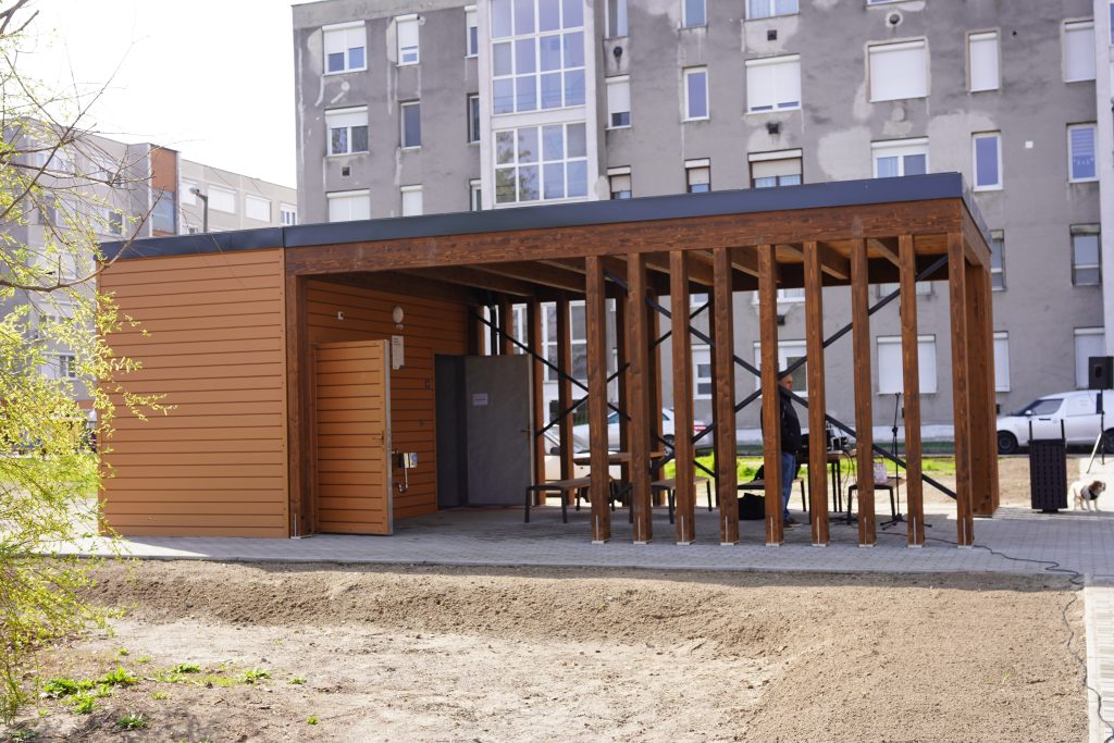 A pályához tartozik egy kiszolgáló épület is, amelyben két akadálymentesített mosdó kapott helyet, megközelítését pedig újonnan készült járdák könnyítik meg.