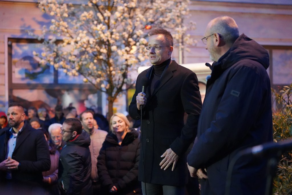 Az összegyűlteket Putnik Tamás köszöntötte, majd begördült két fekete autó és megérkezett az est legjobban várt szereplője. Előtte Zsigó Róbert, a térség országgyűlési képviselője, és Dr. Bari Bernadett polgármester mondott pár szót. A kis színpadon el volt helyezve egy 40 perctől visszafelé számláló óra, így behatárolható volt mire számíthatunk. A pár perces felvezetést követően miniszterhez került a mikrofon, először igaz egy kevésbé jól szóló, utána már egy “bemelegített.” “Csak a Kispest!” kiáltással kezdte, ami azzal magyarázható, hogy pár hónapja a fővárosi sport klub elnökének is mondhatja magát. Majd kampányüzemmódba kapcsolt. Háború, háború, háború- volt a vezérszólam, és persze az, hogy Magyarországnak nem szabad hagynia, hogy belesodorják egy olyan háborúba, amelyhez semmi köze. Minket nem kell megvédeni semmitől, minket nem fog senki megtámadni, mivel a legerősebb katonai szövetségnek, a Nato-nak a tagjai vagyunk fogalmazott. De magyar családok pénzét sem szabad Ukrajnába küldeni, magyar fegyvereket, katonákat meg pláne nem. Mint elmondta, a Fidesz a biztos választás. Ha a Tisza Párt nyerne, eltörölnék a rezsicsökkentést, és a védett benzinárat is, így minden rezsi háromszor annyiba kerülne az üzemanyag ára pedig 1000 forint lenne. De azt sem tudja elképzelni Magyar Péter hogyan tudna tárgyalni az amerikai elnökkel.