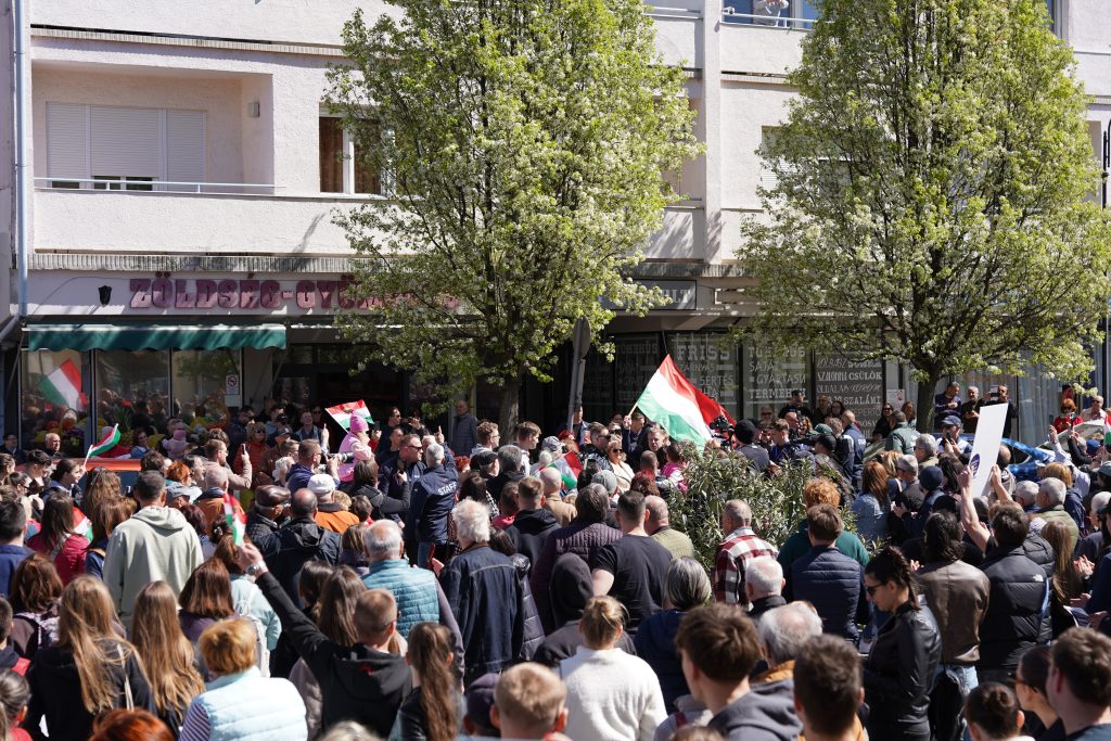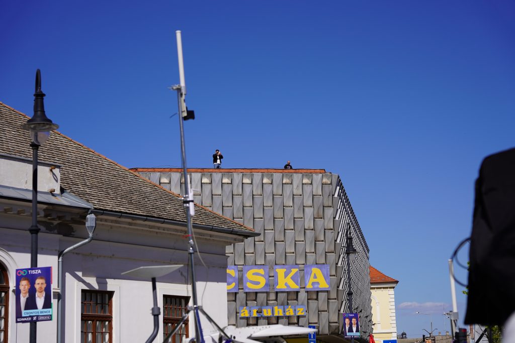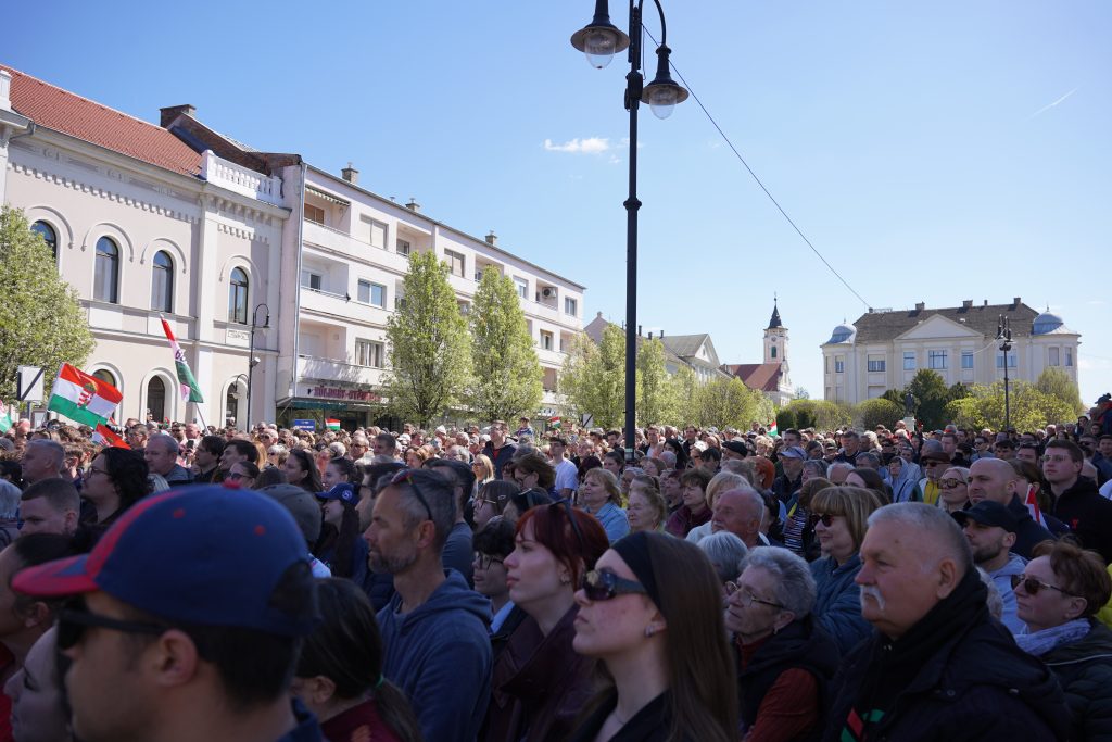 Az emberek többsége a késés ellenére megvárta a Tisza Párt elnökét, aki Bartók Béla utcában szállt ki kocsijából kezében magyar zászlóval a húsbolt magasságában, majd a tömegen keresztül az István a király rockoperában szereplő népszerű betétdal a – Te kit választanál? -aláfestésében vonult a színpadhoz. Körülbelül 1500-ra saccoljuk a jelenlévők számát, akik között jócskán voltak vidékiek is. Csontos Bence külön köszöntötte is a környékbeli Tisza Szigetek tagjait felsorolva a választókerület szinte összes községét, de bócsai zászló is lobogott a sokadalomban. A templom előtti rész tömve volt, de álltak a Tóth Kálmán téren is. Sőt, ketten a Bácska Áruház tetejéről is figyelték a történéseket a vége felé általános derültséget okozva.