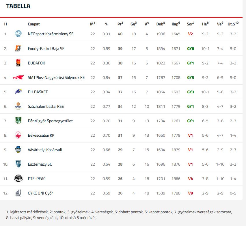 Tabella forrása:mkosz.hu
